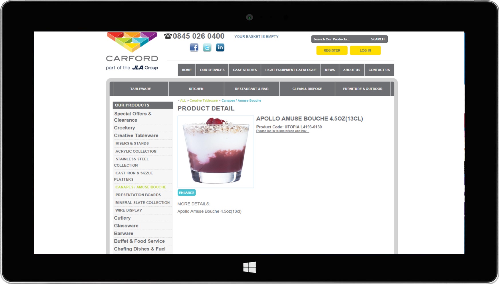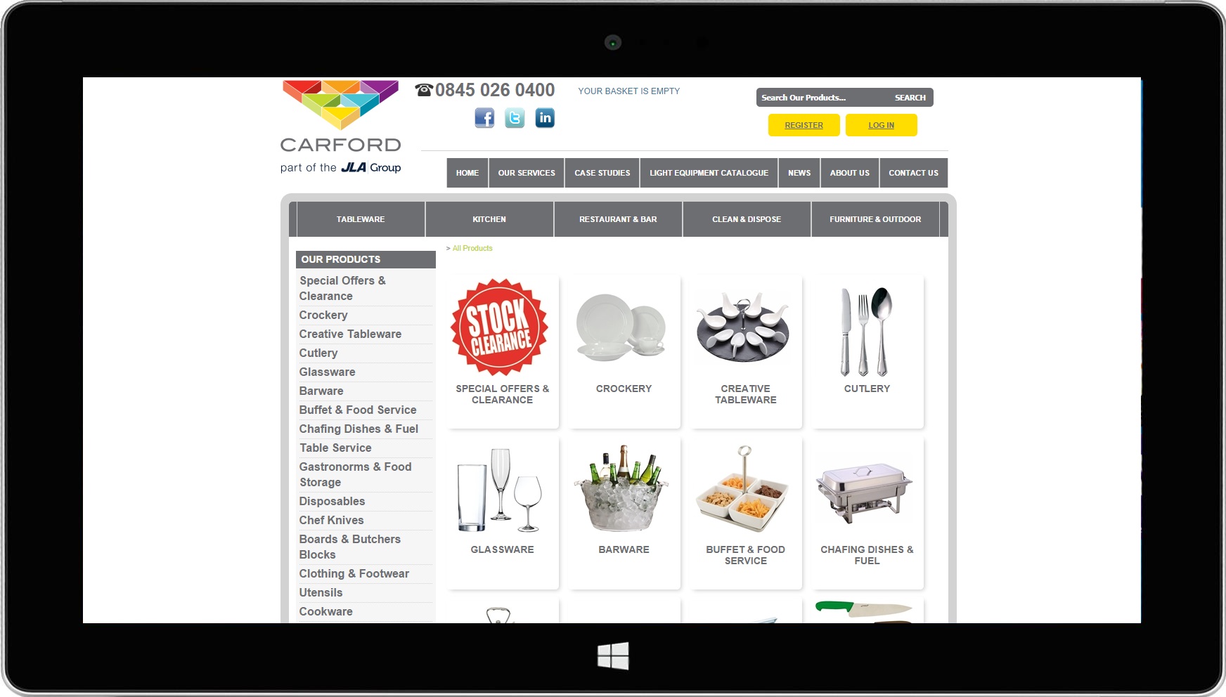 Carford are one of the largest independent catering equipment and kitchen design specialists. Carford use their site to advertise their services as well as to sell products through their online trade portal.