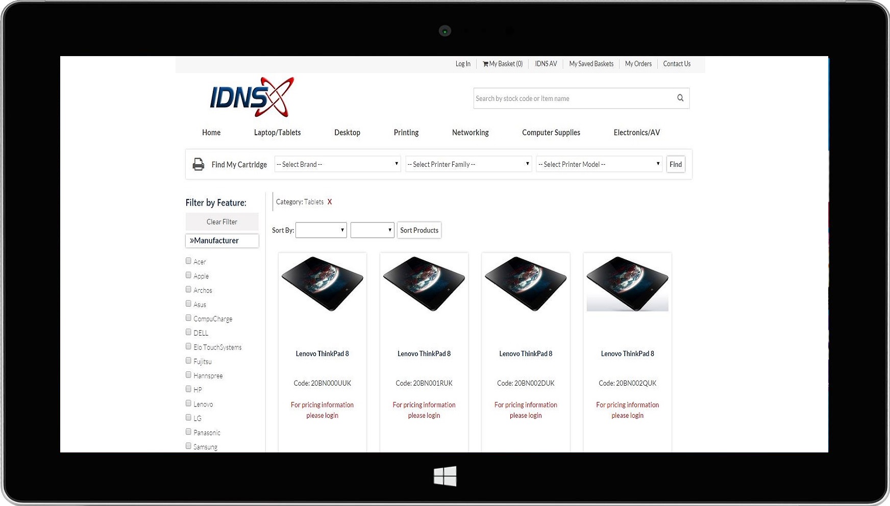 IDNS is one of the UK’s leading suppliers & integrators of ICT products, providing ICT hardware such as PCs, laptops, tablets and printers. Logged in users can buy a range of high quality, globally recognised brands such as HP and Apple. One key adaptability made for their site is the ‘find my cartridge’ filter, where users can conduct a detailed search to find the correct cartridge quickly.